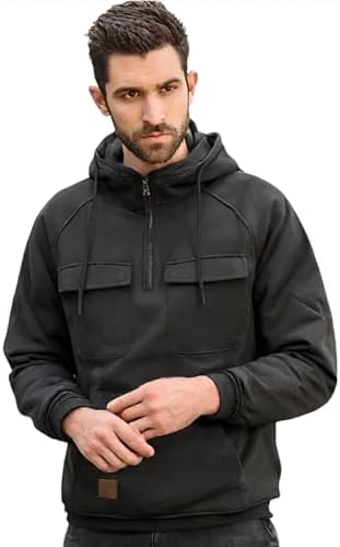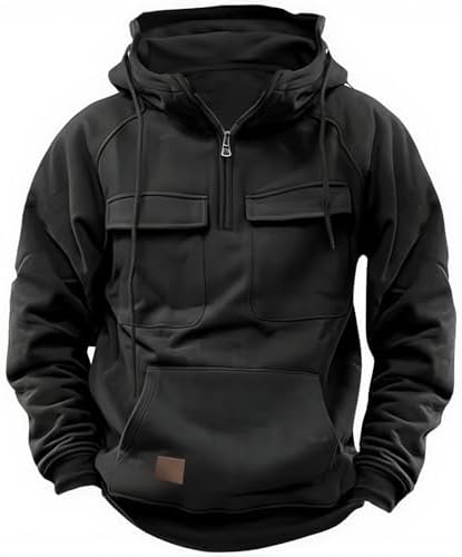 Hello MrLin Black Hoodie for Men Tactical Sweatshirt Quarter…